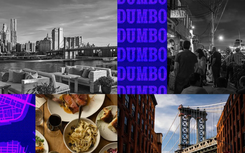 Dumbo, which means “underneath the Manhattan Overpass,” is located between the Brooklyn and Manhattan Bridges on the East River waterfront. This popular neighborhood has stunning views of Manhattan and the bridges, and an ever-expanding food and drink scene to keep you fed while you work and make time to play.