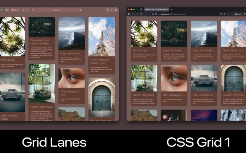 This approach results in a masonry-style waterfall layout being delivered to the browsers that support Grid Lanes, while a more traditional layout of equal-sized boxes are delivered using CSS Grid level 1 to browsers that don’t yet support Grid Lanes.