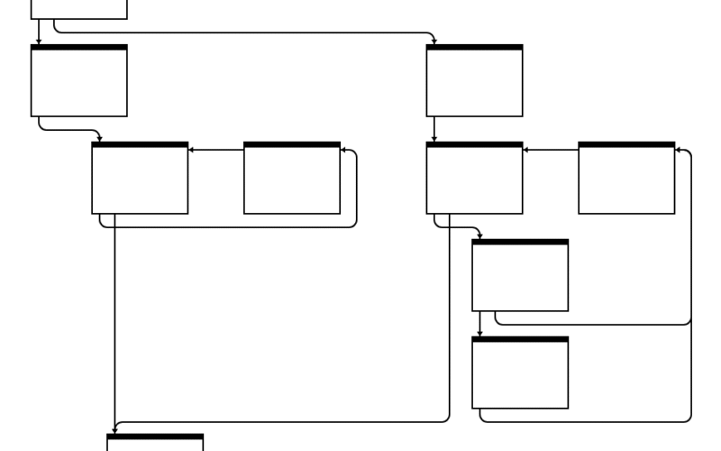 We will now go through the entire iongraph layout algorithm. Each section contains explanatory diagrams, in which rectangles are basic blocks and circles are dummy nodes. Loop header blocks (the single entry point to each loop) are additionally colored green.