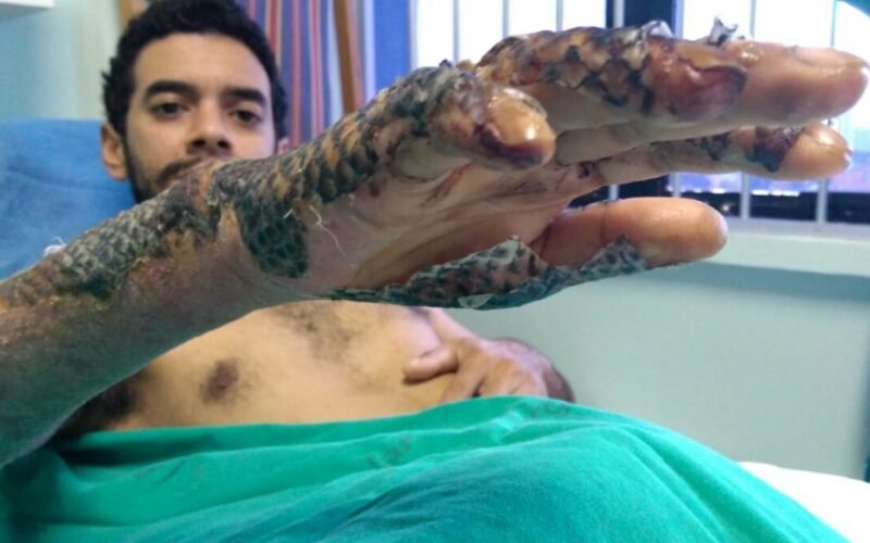 Antônio dos Santos, a fisherman, was offered the tilapia treatment as part of a clinical trial after he sustained burns to his entire right arm when a gas canister on his boat exploded. He accepted.