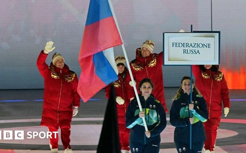 No Great Britain athlete attended Friday’s ceremony, for logistical rather than political reasons, as several members of the team competed across the Dolomites on Saturday morning.