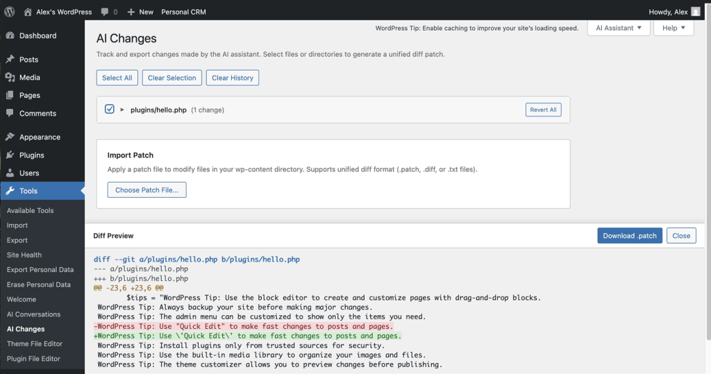 Because my.WordPress.net is powered by WordPress Playground, an AI assistant can safely modify it, empowering you to customize beyond what you’re used to. Ask it to modify a plugin to your liking, or create an entirely new one, featuring your desired block. Ask it about the data you have stored in your WordPress. The assistant remembers what it touches and makes it easy to share your changes with others. Over time, WordPress itself can become your personal knowledge base that the AI understands and works with.