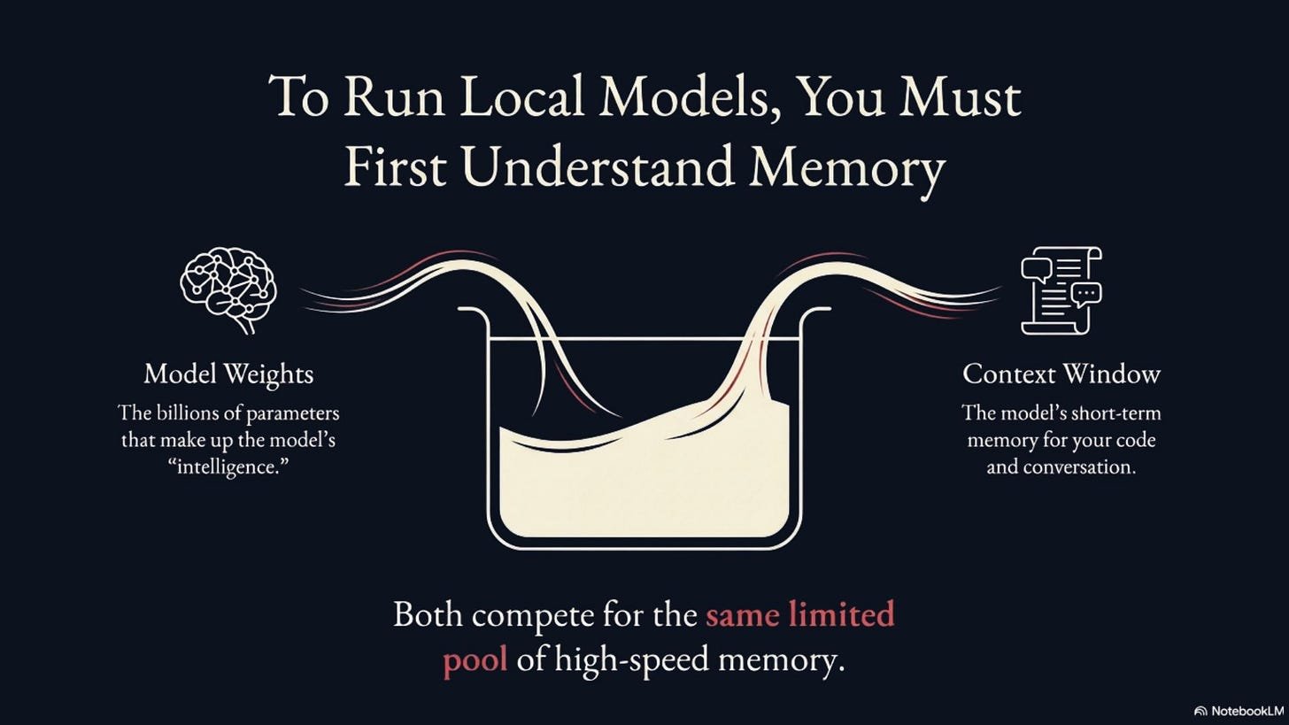Local AI has two parts that eat up your memory: The model itself and the model’s context window.